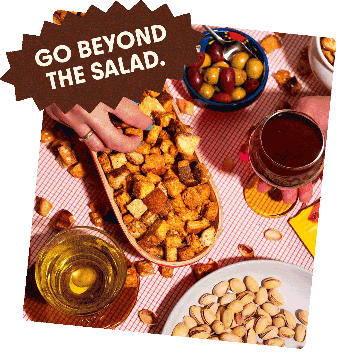 Big flavors. Better bread. Serious CRONCH. No salad required – but you can still go there. Croots make everything better- including snack time. Croutons. Exactly what you think, finally done right.