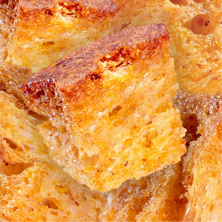Made with just: Sourdough Bread, Extra Virgin Olive Oil, Nutritional Yeast, Garlic Powder, Salt. Contains Wheat.