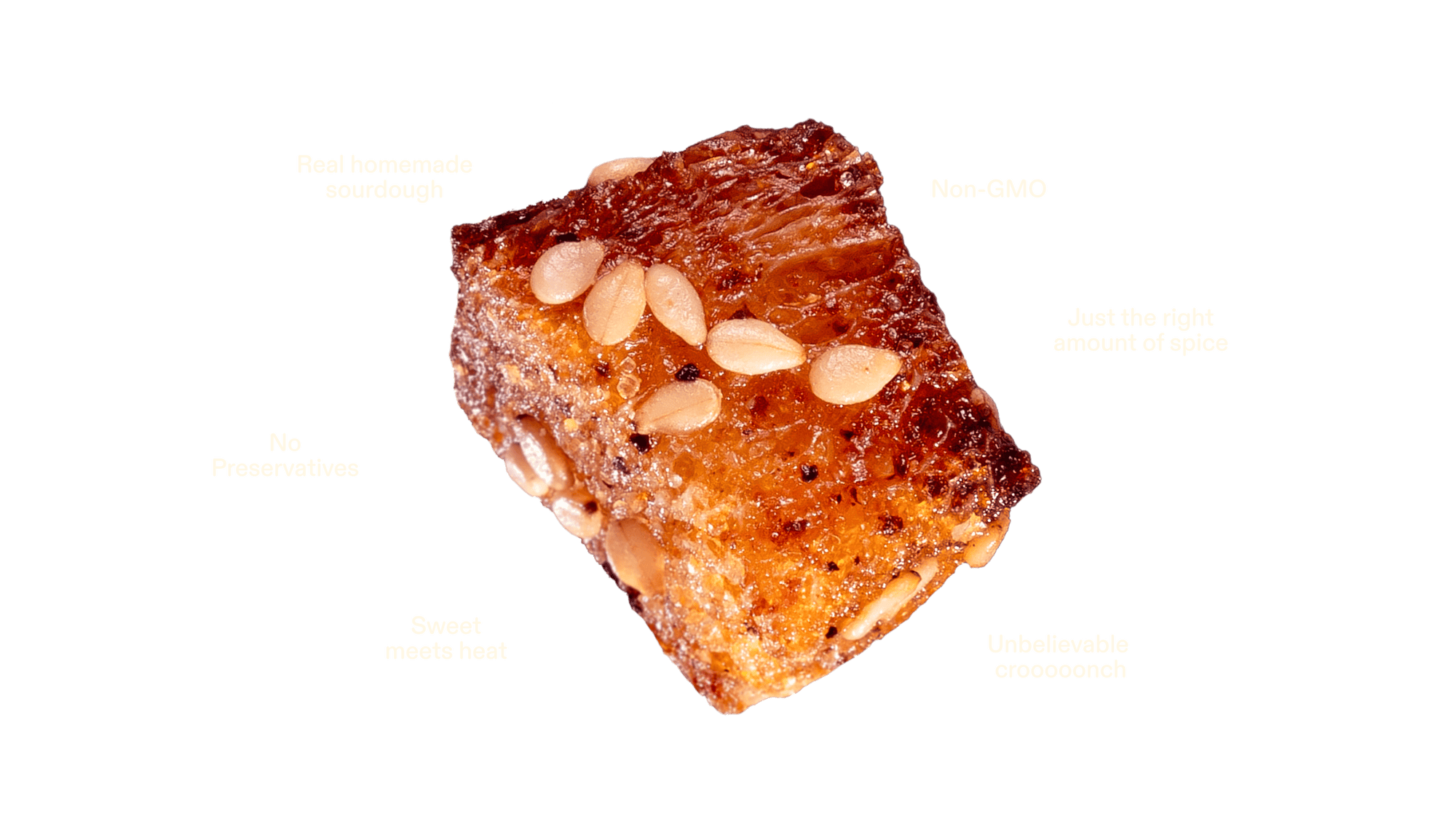 Toasty sesame and golden honey hit first, then a slow spice sneaks in. Bite after bite, the burn builds into a craving that keeps you coming back.